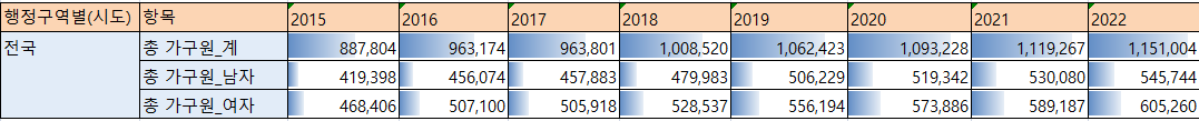 | 연도별, 성별 취업자 수 (0) | 2023.09.06 |