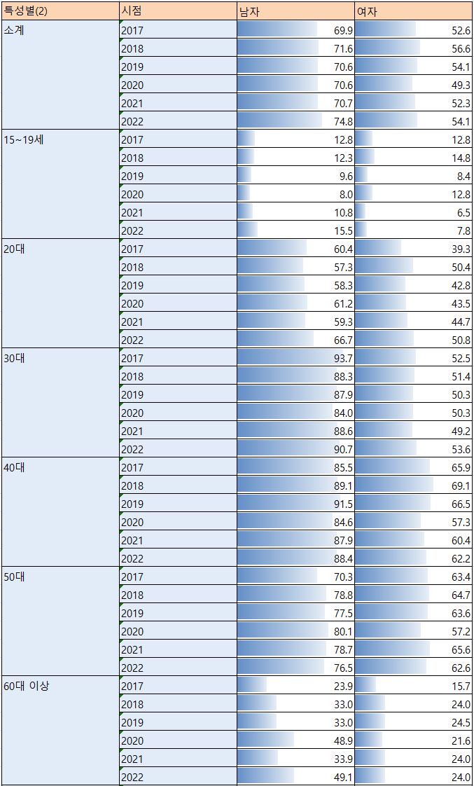 연령별, 성별, 나이별 고용률